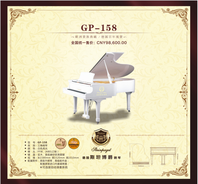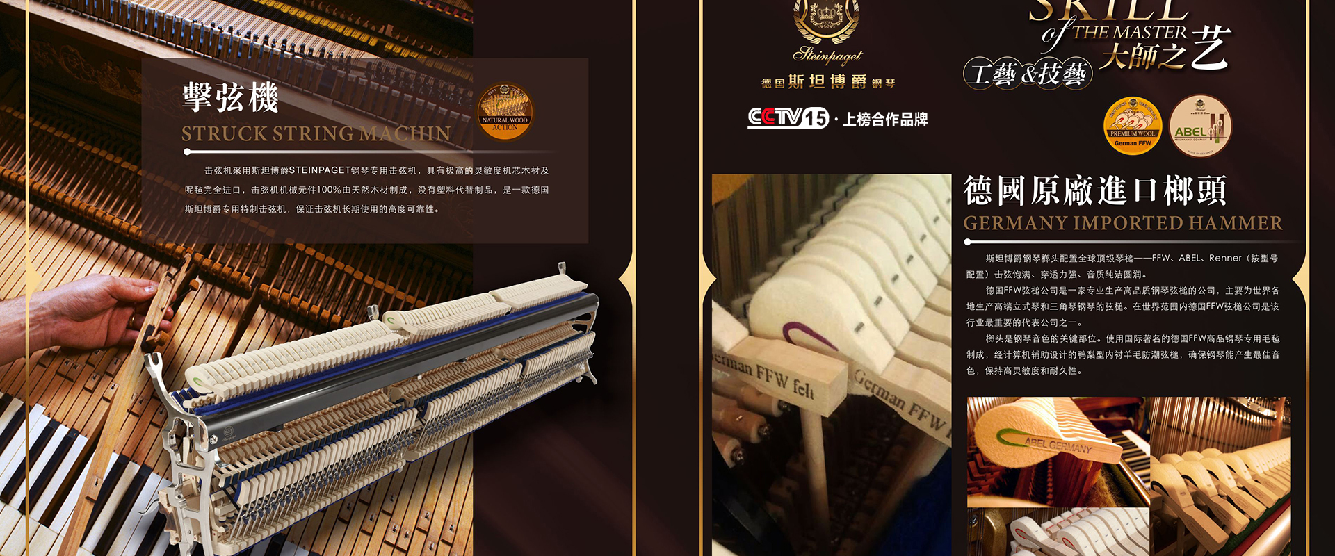 斯坦博爵是一家專注于STEINPAGET立式鋼琴與三角鋼琴的研發(fā)、生產(chǎn)與銷售的公司。我們巧妙融合先進(jìn)的德國(guó)制琴工藝與獨(dú)特鋼琴設(shè)計(jì),致力于打造卓越品質(zhì)。我們以三大核心價(jià)值為基石:經(jīng)營(yíng)理念追求“高效 · 品牌 · 服務(wù)”,產(chǎn)品理念恪守“傳承 · 創(chuàng)新 · 品質(zhì)”,服務(wù)宗旨奉行“客戶需求即工作,客戶要求即追求。為鑄就非凡品質(zhì),我們?nèi)轿煌度耄阂M(jìn)德國(guó)、美國(guó)、日本尖端設(shè)備與優(yōu)質(zhì)制琴材料;特邀德國(guó)頂級(jí)設(shè)計(jì)師及美國(guó)專家顧問(wèn)傾情指導(dǎo),傳承歐洲經(jīng)典工藝與純正德國(guó)精髓;斥資打造恒溫恒濕生產(chǎn)車間及成品鋼琴靜置倉(cāng),確保全球任何氣候下STEINPAGET鋼琴音質(zhì)純美、演奏性能始終如一;并在中國(guó)構(gòu)建完善售后服務(wù)體系,提供國(guó)際水準(zhǔn)的真誠(chéng)服務(wù)。